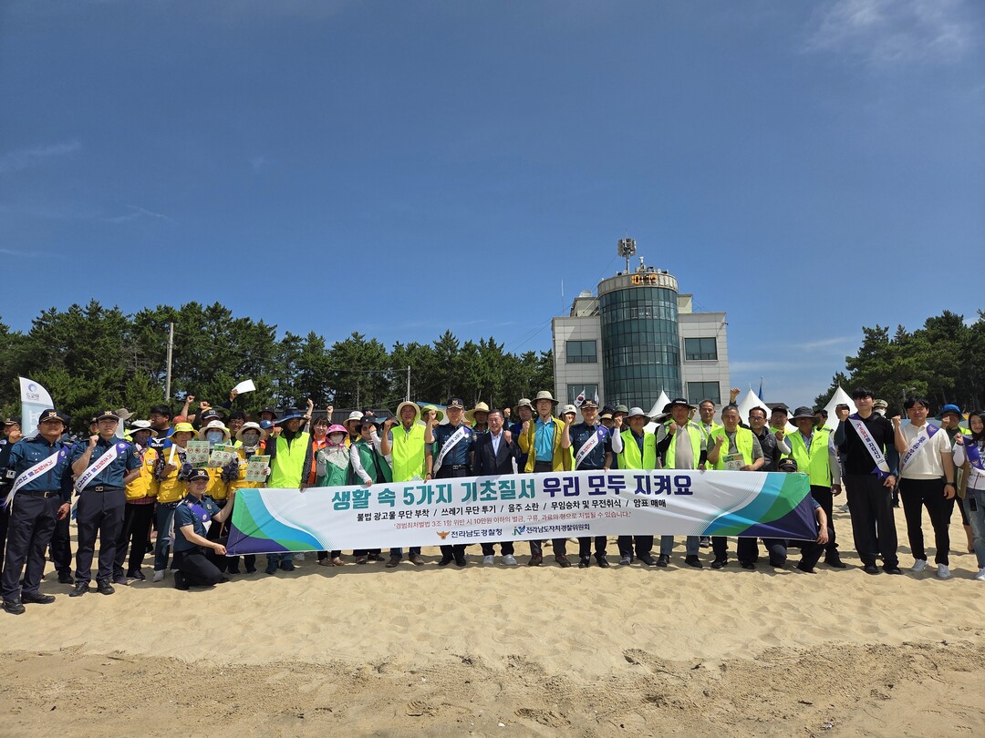 전남경찰청이 완도 신지 명사십리해수욕장에서 기초질서 확립 캠페인을 진행했다고 14일 밝혔다.