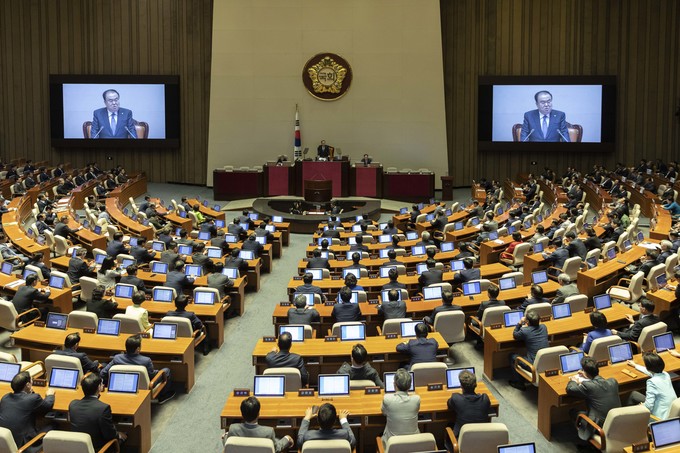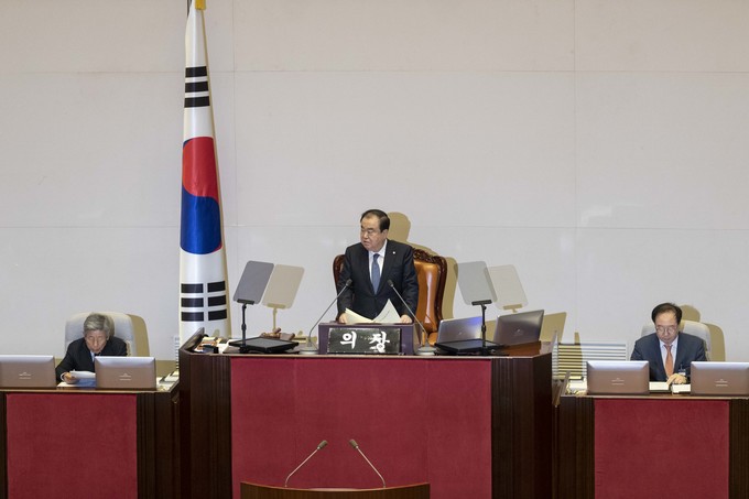 문희상 국회의장이 2일 오후 서울 여의도 국회에서 열린 제371회(정기회) 개회식에 참석해 개회사를 하고 있다.