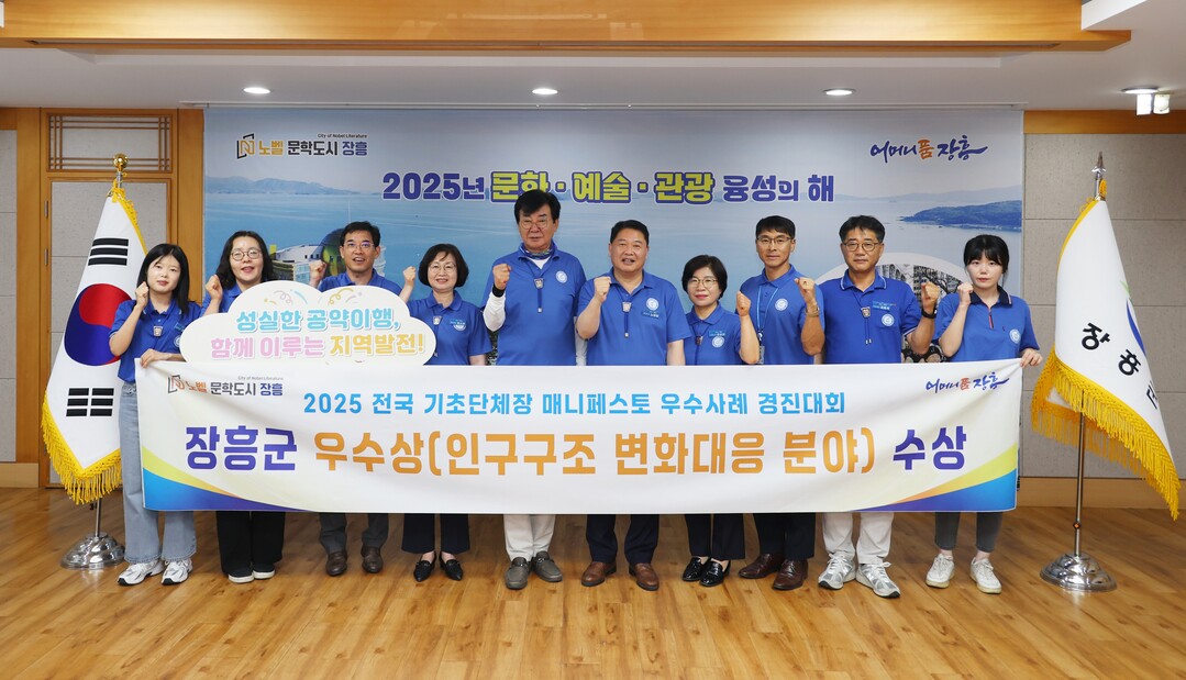 전남 장흥군이 한국매니페스토실천본부 주관 '2025 전국 기초단체장 매니페스토 우수사례 경진대회'에서 우수상을 수상했다고 26일 밝혔다.