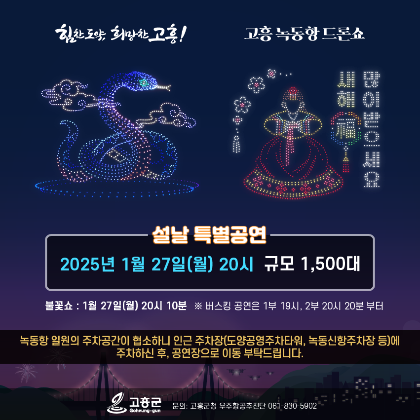 | ▲ 2025년 설 맞이 고흥 녹동항 드론쇼 안내문 [고흥군 제공] |