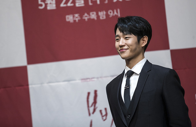 배우 정해인이 20일 오후 서울 구로구 라마다서울신도림호텔에서 열린 MBC 수목미니시리즈 '봄밤' 제작발표회에서 포즈를 취하고 있다.