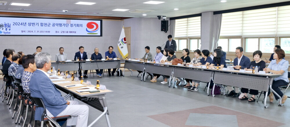 경남 합천군은 지난 31일 군청에서 공약평가단 26명이 참석한 가운데, 상반기 공약 추진상황 점검 및 평가를 위한 공약평가단 정기회의를 개최했다고 1일 밝혔다.