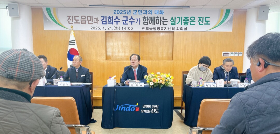 김 군수는 21일 전남 진도읍사무소에서 열린 '김희수 진도군수가 함께하는 군민과 대화'에서 인사말을 통해 인구 유입을 강조했다.
