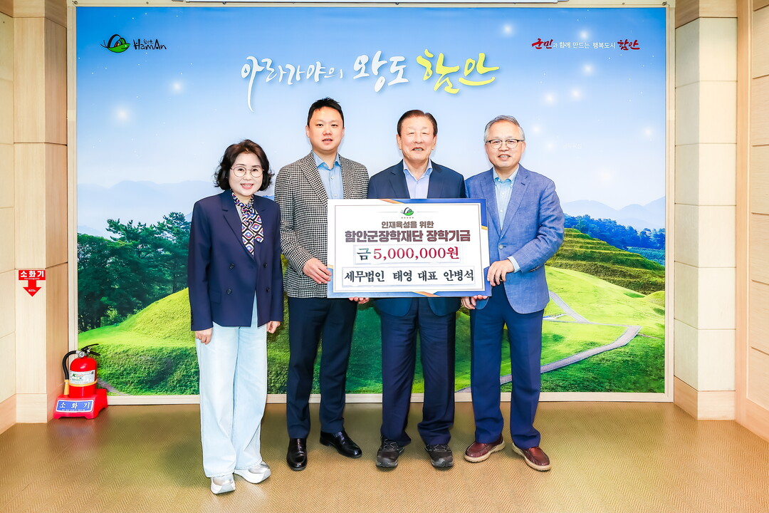 함안군은 29일 창원시 마산합포구 산호동에 위치한 세무법인 태영(공동대표 안병석·안상희)이 고향 함안을 위한 인재 육성에 힘을 보태기 위해 장학금 500만 원을 기탁했다고 밝혔다.