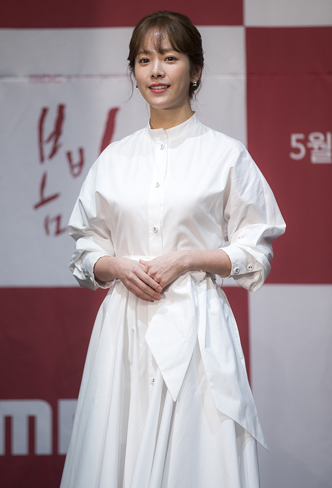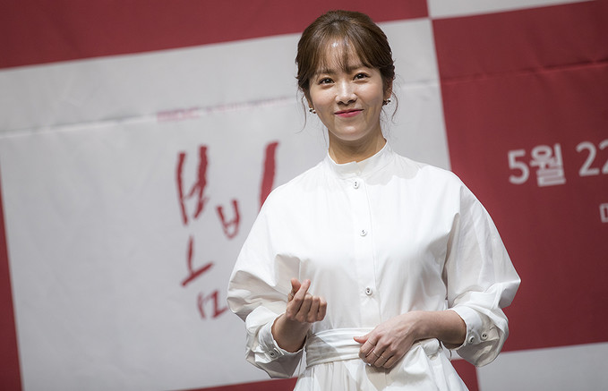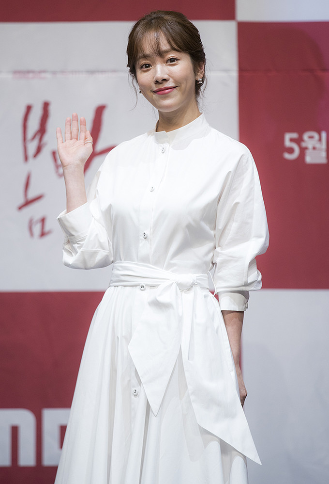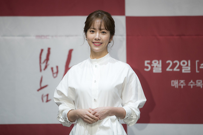 배우 한지민이 20일 오후 서울 구로구 라마다서울신도림호텔에서 열린 MBC 수목미니시리즈 '봄밤' 제작발표회에서 포즈를 취하고 있다.