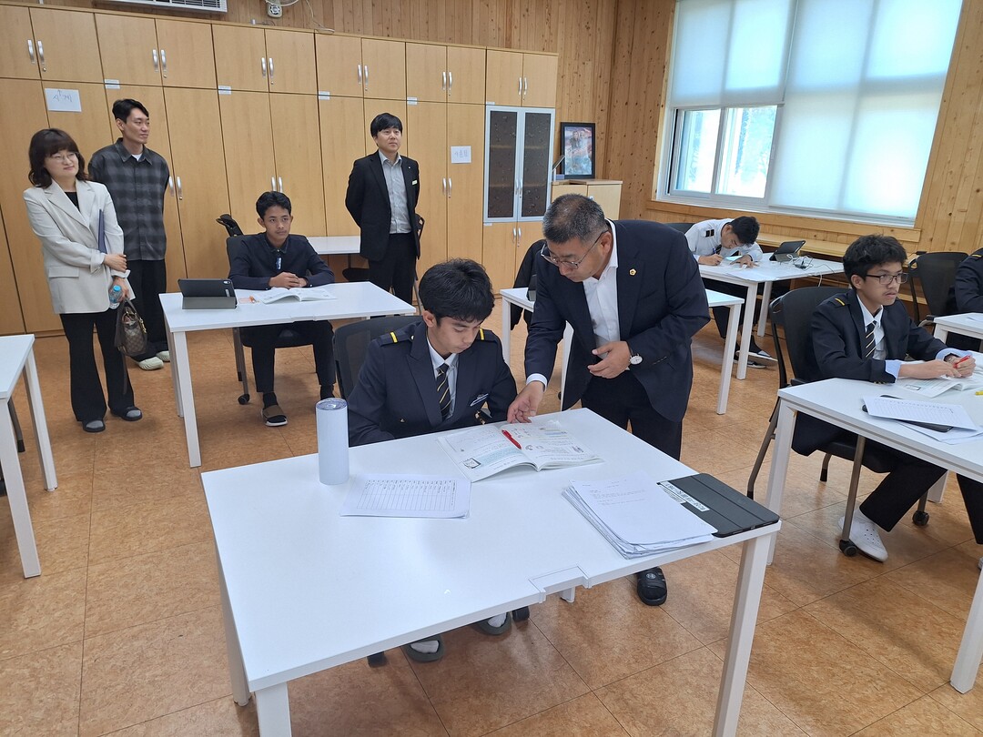 | ▲ 최정훈(더불어민주당, 목포4) 전남도의회 의원이 직업계고 학교를 방문해 해외 인재 학생 운영 실태를 살펴보고 있다. [전남도의회 제공] |