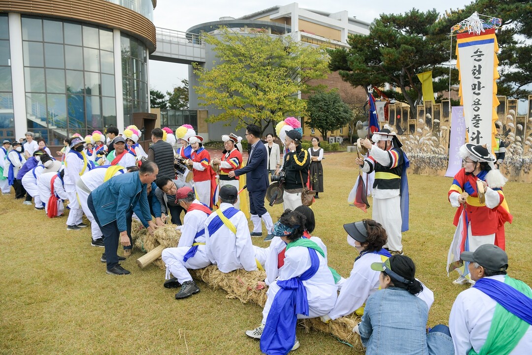 이 곳에서 잔디광장까지 도사동 주민센터 길놀이패가 길을 열고 그 뒤를 주민이 함께 용줄을 메고 순천만습지까지 행진을 이어갔다.