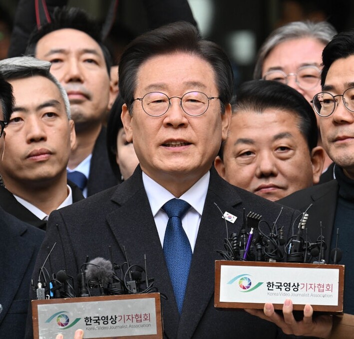 | ▲ 더불어민주당 이재명 대표가 25일 서울 서초구 중앙지방법원에서 열린 위증교사 혐의 1심 재판에서 무죄 판결을 선고받은 뒤 법원을 나서며 취재진에게 입장을 밝히고 있다. [뉴시스] |