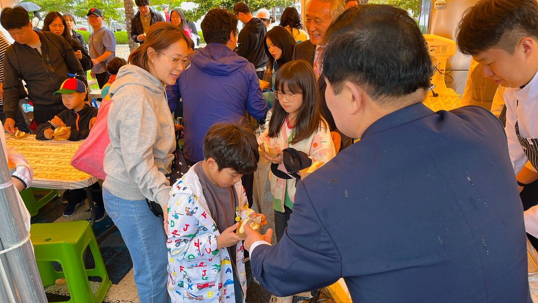 | ▲ 공영민 고흥군수가 3일 제15회 고흥우주항공축제 현장에서 만들어진 우주식량을 초등생 관광객에게 나눠주고 있다. [강성명 기자] |