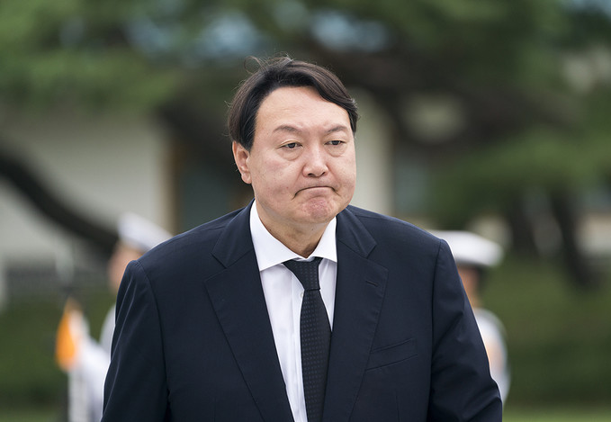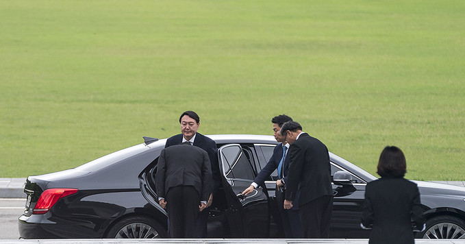 윤석열 신임 검찰총장이 25일 오후 서울 동작구 국립서울현충원에서 참배를 위해 차량에서 내리고 있다.