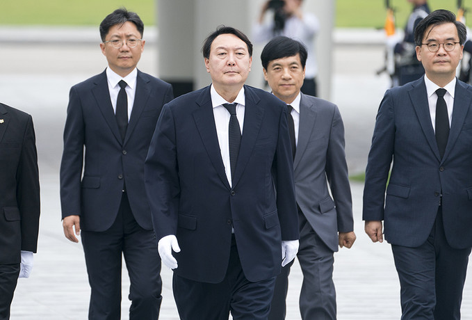 윤석열 신임 검찰총장이 25일 오후 서울 동작구 국립서울현충원을 찾아 참배를 하기 위해 현충탑으로 향하고 있다.