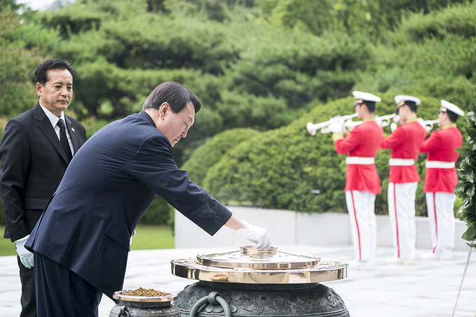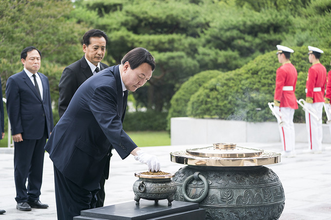 윤석열 신임 검찰총장이 25일 오후 서울 동작구 국립서울현충원을 찾아 현충탑에 분향을 하고 있다.