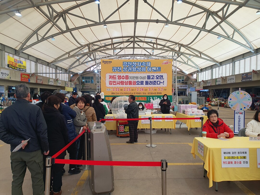 제53회 강진 청자축제 기간에 강진읍시장에서 닷새동안 추진한 강진 상권활성화 이벤트 결과, 지역 상가 매출액이 1억2400여만 원을 달성했다.