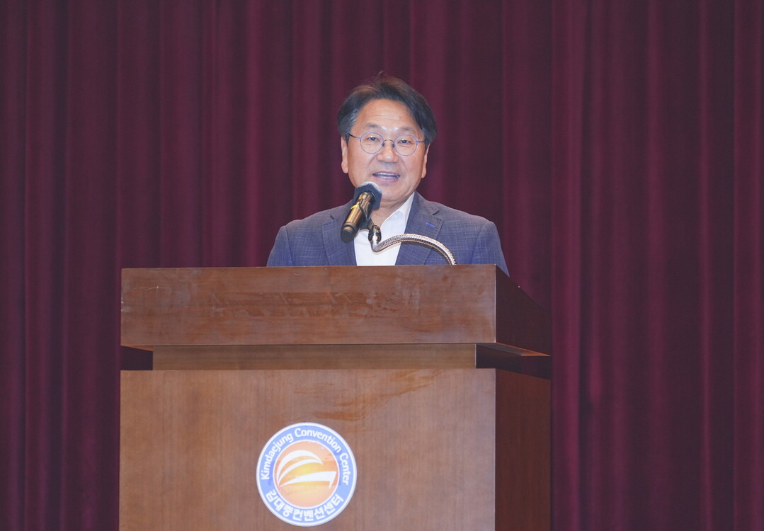 | ▲ 30일 한국상하수도협회장인 강기정 광주시장이 2024 공공하수도 관리대행 워크숍 참석한 뒤 인사말을 하고 있다. [광주광역시 제공] |