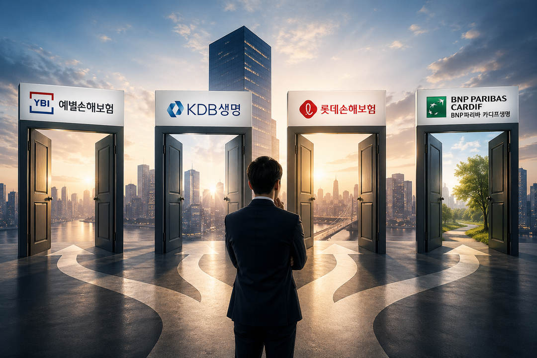 | ▲ 한국투자금융지주가 예별손보·KDB생명·롯데손보·BNP파리바카디프생명 등 4개 매물을 동시에 검토하며 인수 전략을 저울질하는 상황을 표현한 이미지. [챗GPT 생성] |