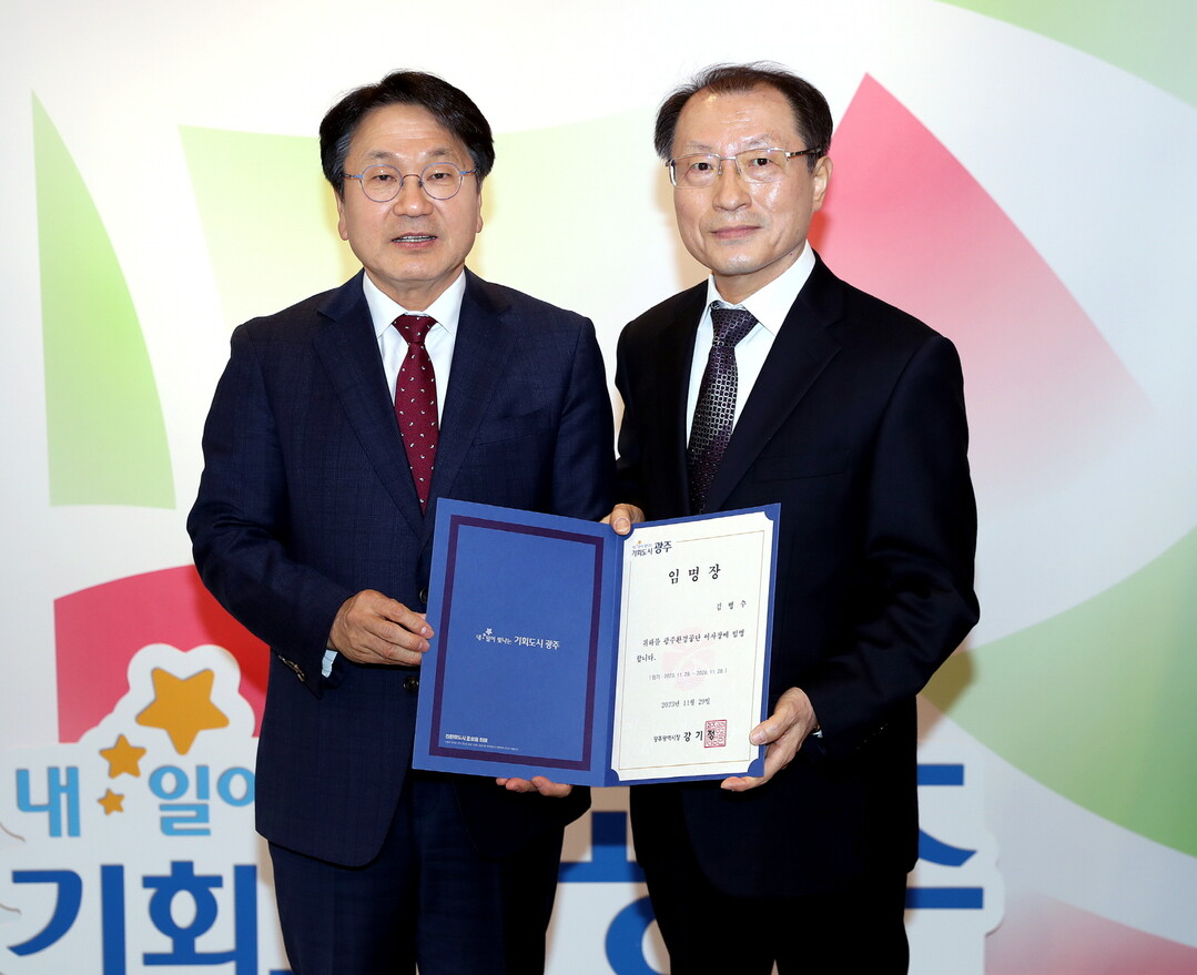 강기정 광주광역시장이 29일 광주환경공단 제9대 이사장으로 김병수(65) 전 광주 동구 부구청장을 임명했다. 김 이사장의 임기는 이날부터 2026년 11월28일까지다.