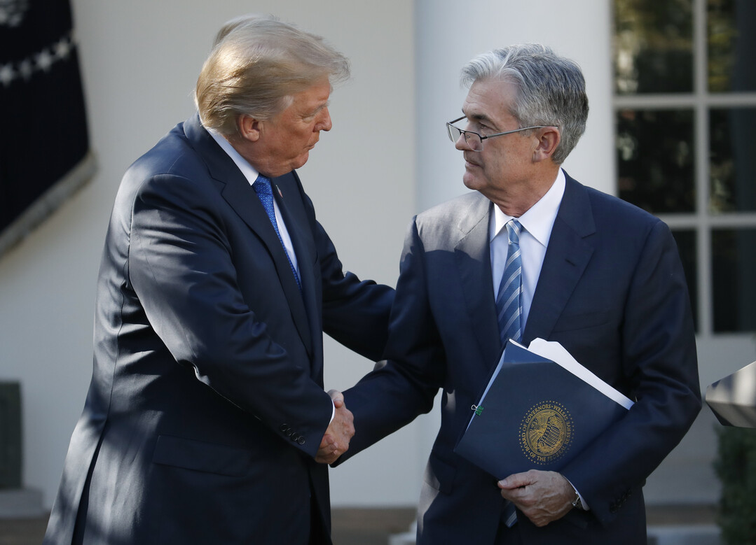 | ▲ 도널드 트럼프 미국 대통령이 2017년 11월 2일(현지시간) 워싱턴 백악관 로즈가든에서 차기 연준 의장으로 지명한 제롬 파월 당시 연준 이사와 악수하는 모습. [AP 뉴시스] |