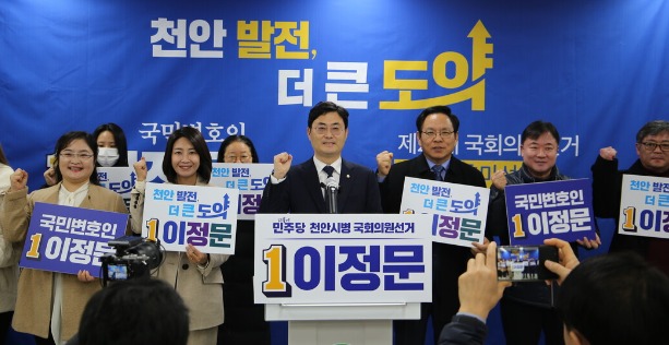 한편 이정문 의원은 기자회견에 앞서 천안시 동남구 선거관리위원회를 방문해 국회의원 선거 예비후보 등록을 마쳤다.