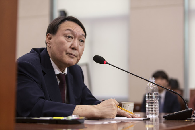 윤석열 검찰총장 후보자가 8일 오후 서울 여의도 국회에서 열린 검찰총장 인사청문회에 출석해 의원 질의를 듣고 있다.