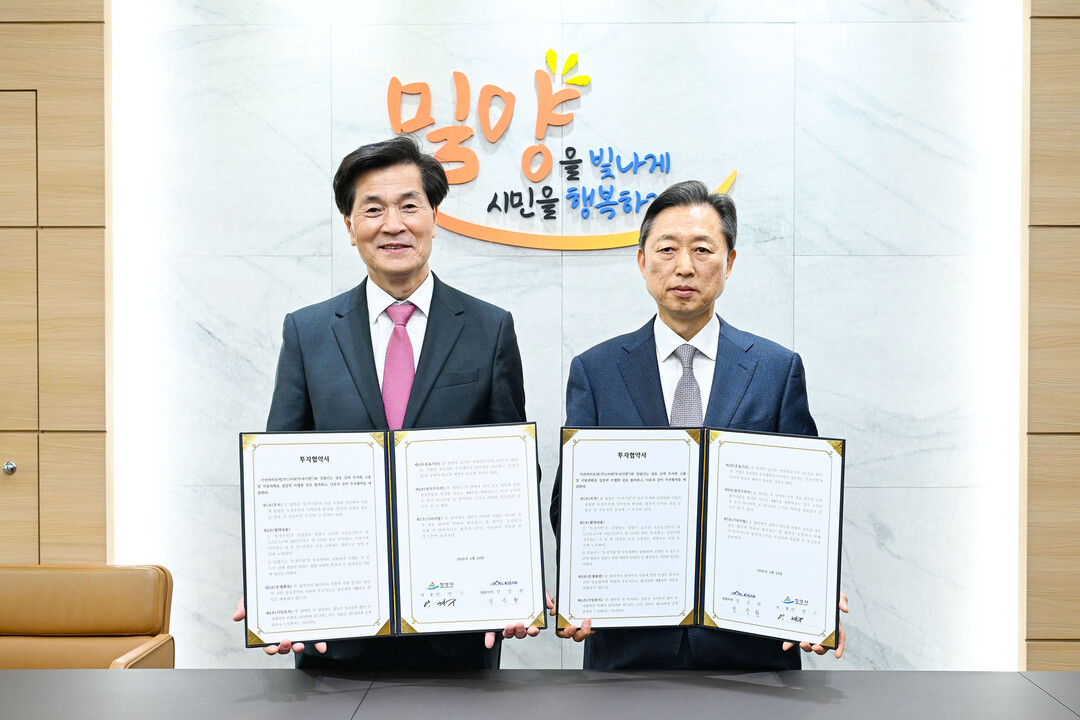 경남 밀양시는 29일 시청 시장실에서 기산바이오텍㈜과 투자협약을 체결했다.