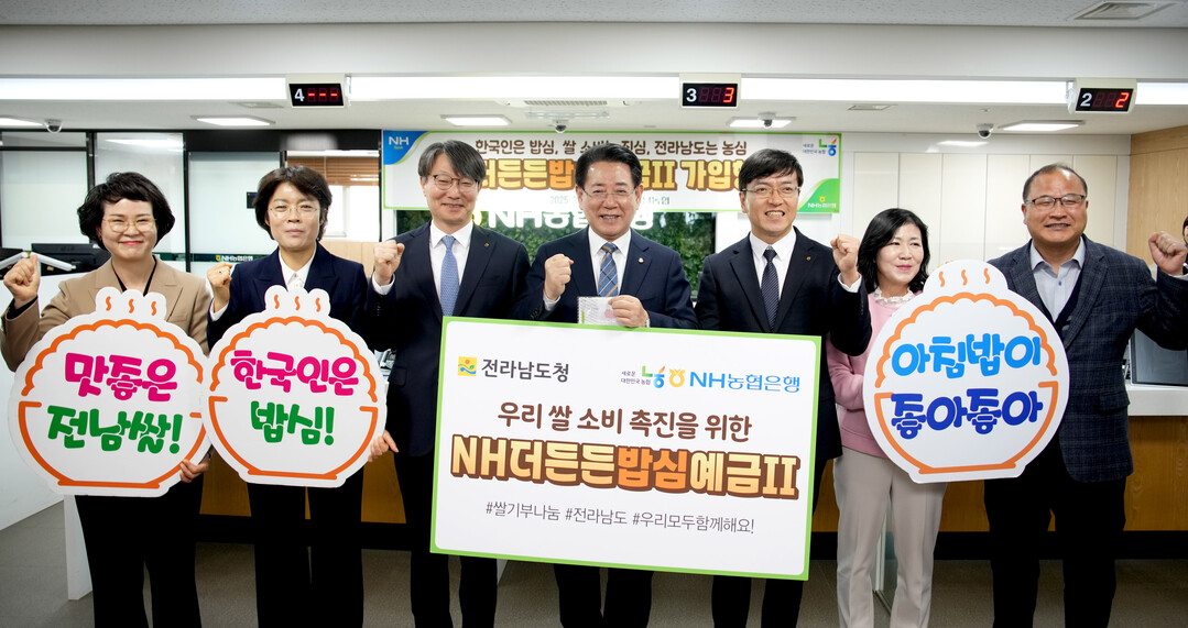 김영록 전남지사는 "'NH더든든밥심예금Ⅱ'을 통해 쌀 소비 부진으로 어려움을 겪는 농가에 조금이나마 힘이 되길 바란다"며 "많은 분이 밥심 예금 가입을 통해 아침밥 먹기, 우리 쌀 먹기 운동에 동참하길 바란다"고 말했다.