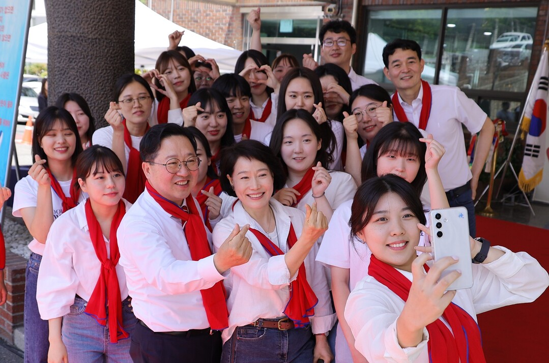 | ▲대전청년내일재단 개소식에서 기념사진을 찍고 있는 이장우 시장과 청년들.[대전시 제공] |