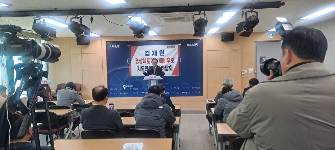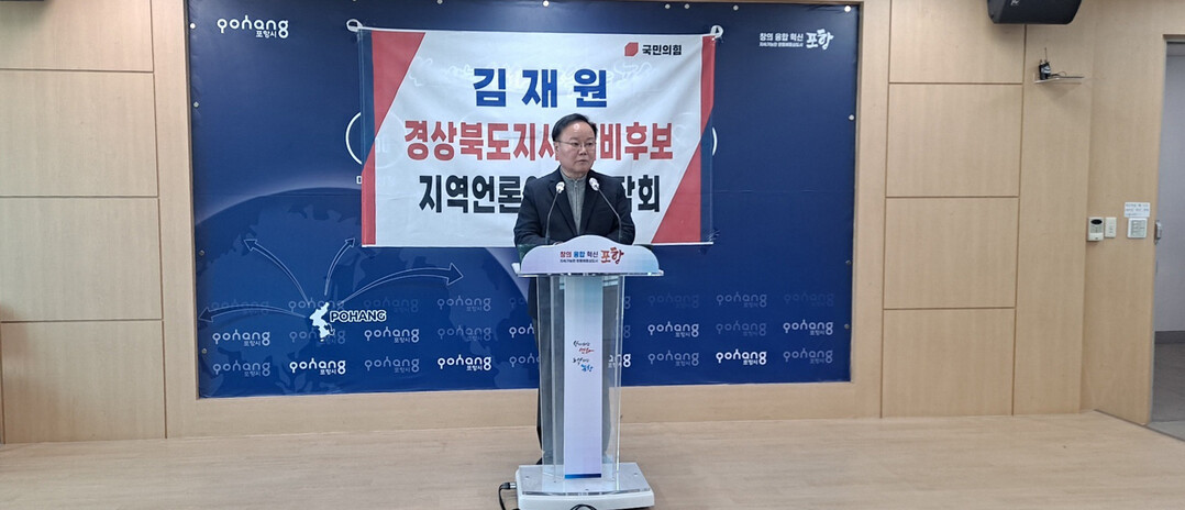 김재원(국민의힘 최고위원) 경상북도지사 예비후보가 4일 포항시청 브리핑룸에서 기자간담회를 갖고 포항 발전 5대 공약을 발표했다.