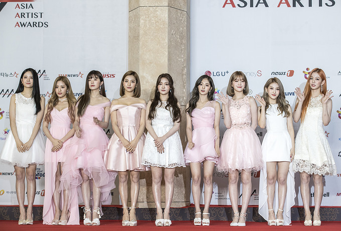 그룹 프로미스나인이 28일 오후 인천 중구 파라다이스시티 아트스페이스 플라자에서 열린 ‘2018 AAA(Asia Artist Award)’ 레드카펫 행사에서 포즈를 취하고 있다.