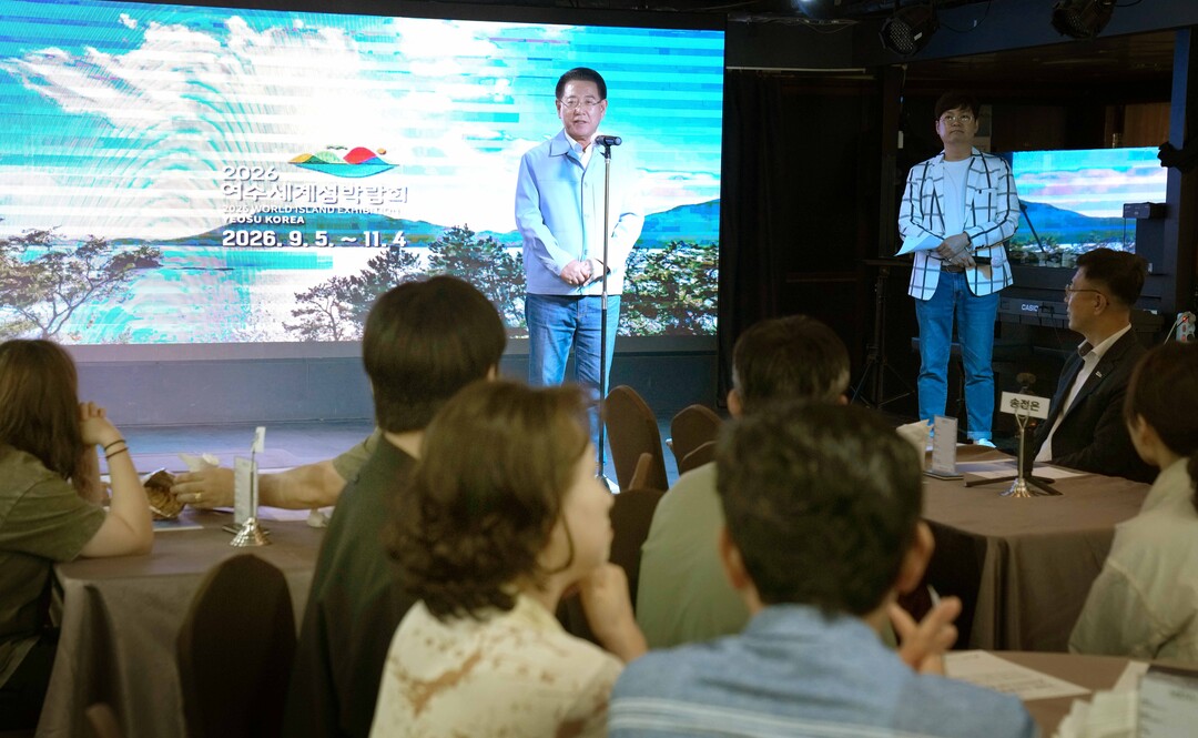 | ▲ 김영록 전라남도지사가 30일 여수엑스포여객선터미널에서 출항하는 '전남 섬 밤바다 크루즈'에서 인사말을 하고 있다. [전남도 제공] |