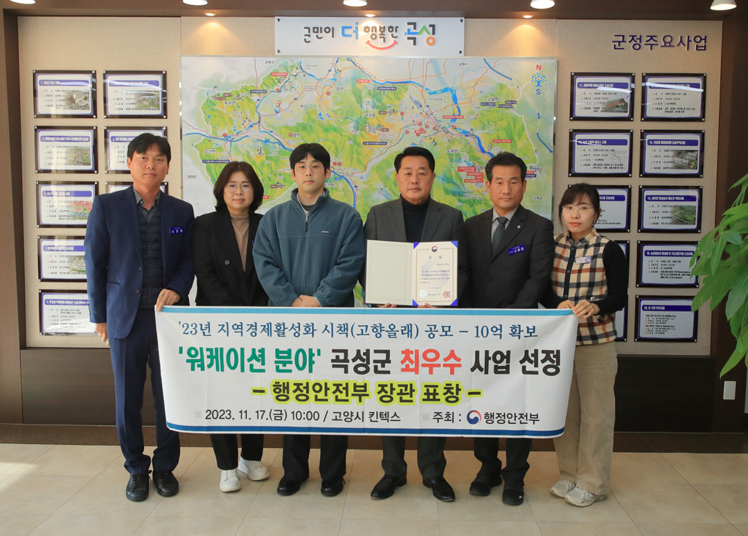 전남 곡성군이 지난 17일 ‘2023 대한민국 지방자치경영혁신 엑스포’에서 고향올래 사업의 ‘워크빌리지in 곡성’이 행정안전부 장관 기관 표창을 수상했다고 20일 밝혔다.