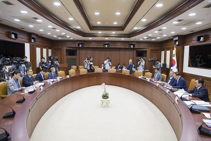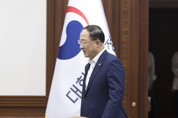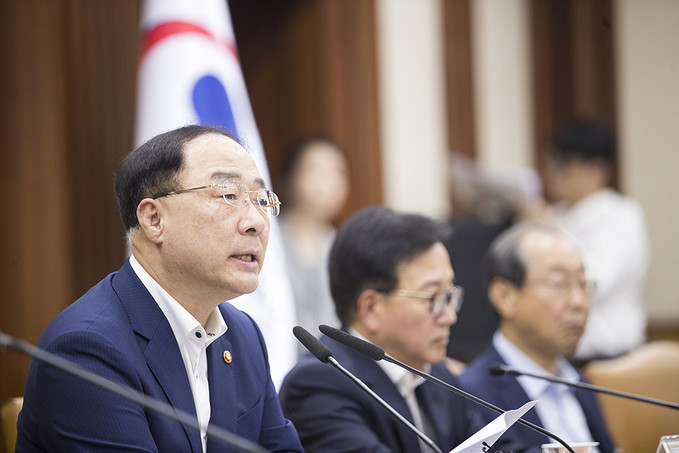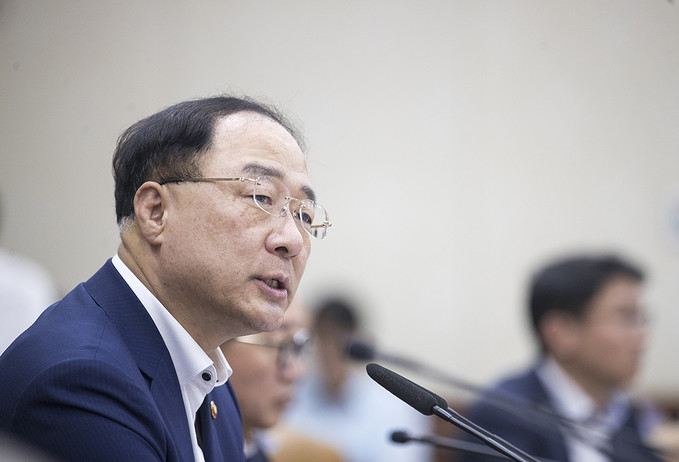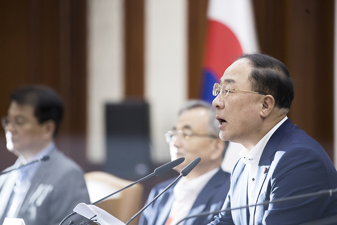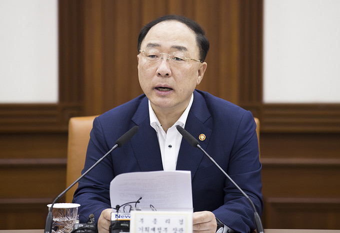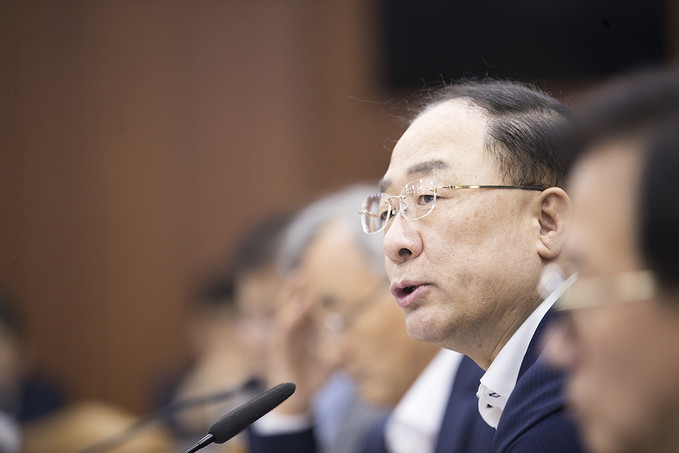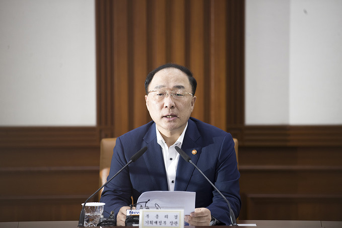 홍남기 경제부총리 겸 기획재정부 장관이 23일 오후 서울 종로구 정부서울청사에서 열린 연구기관장 간담회에서 모두발언을 하고 있다.