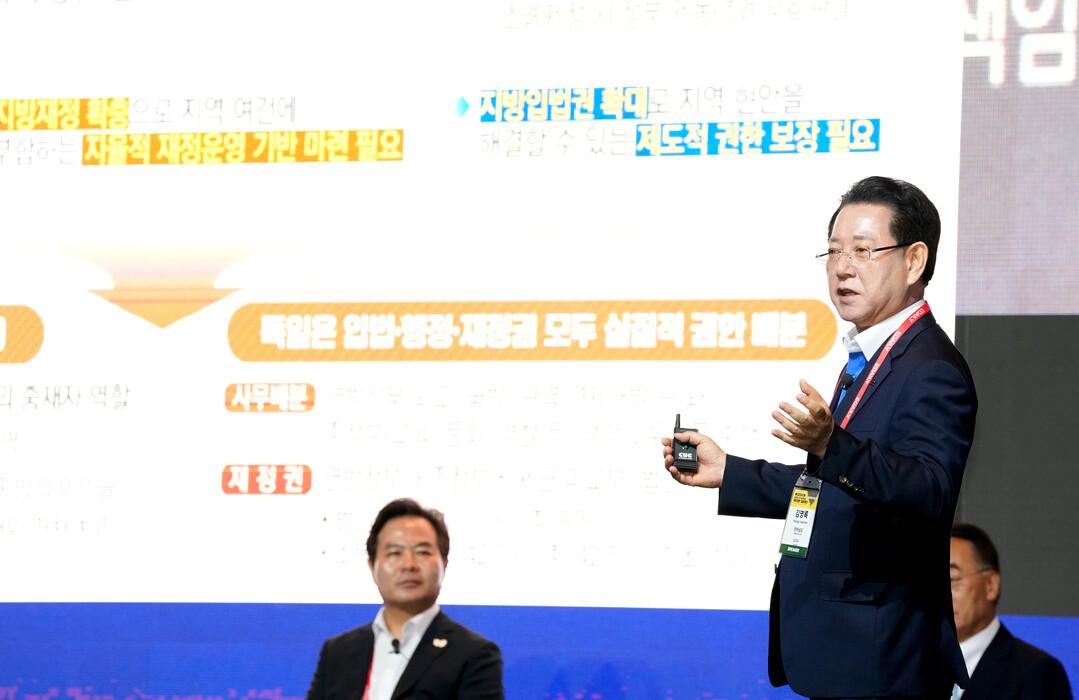 특히 김 지사는 "지방이 아무리 노력해도 인허가, 예산, 입법 권한이 중앙에 묶여 있어 손발이 묶인 상태"라며 "헌법 개정을 통해 독일식 연방제 수준의 강력한 지방분권을 실현해야 한다"고 목소리를 높였다.