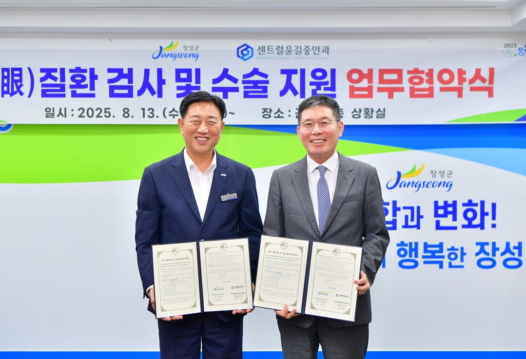 장성군은 '센트럴윤길중안과'와 안질환 검사와 수술지원 관련 업무협약을 체결했다고 14일 밝혔다.