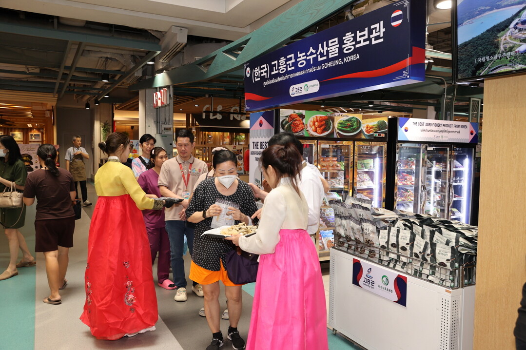 | ▲ 22일 태국 방콕 파라다이스 몰에서 열린 고흥 김 판촉 행사에서 태국 소비자들이 홍보관 앞에 줄을 서서 고흥 김을 관심 있게 살펴보고 있다. [고흥군 제공] |