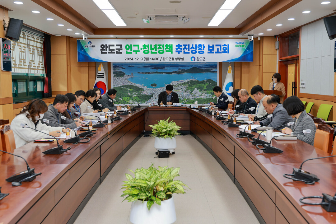 전남 완도군이 김현철 부군수 주재로 인구 감소 위기 극복을 위한 '인구·청년 정책 추진 상황 보고회'를 지난 9일 개최했다.