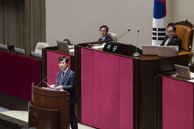바른미래당 하태경 의원이 11일 오후 서울 여의도 국회에서 열린 본회의 대정부 질문에서 발언하고 있다.