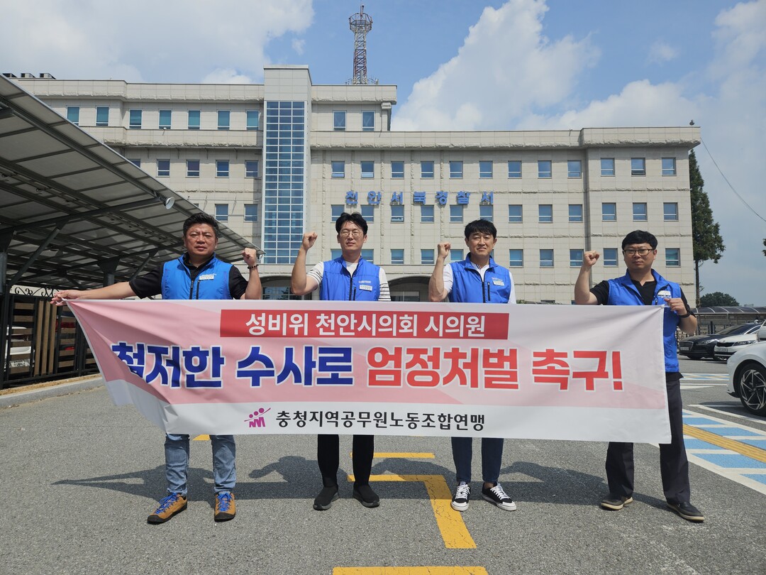 | ▲성비위 시의원 엄정처벌을 촉구하는 천안시청 공무원노조.[노조측 제공] |