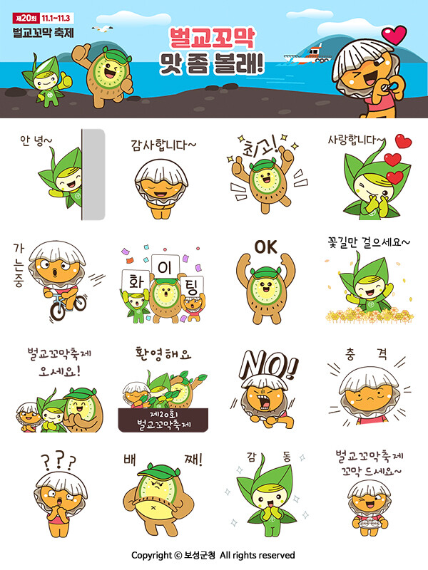 보성군은 "11월 1일부터 3일까지 열리는 벌교꼬막축제를 응원하기 위해 준비한 BS삼총사 이모티콘도 받고, 다양한 프로그램이 마련된 축제를 찾아 즐기시길 바란다"고 말했다.