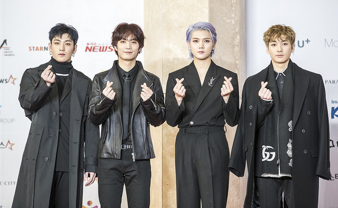 그룹 뉴이스트W 28일 오후 인천 중구 파라다이스시티 아트스페이스 플라자에서 열린 ‘2018 AAA(Asia Artist Award)’ 레드카펫 행사에서 포즈를 취하고 있다.