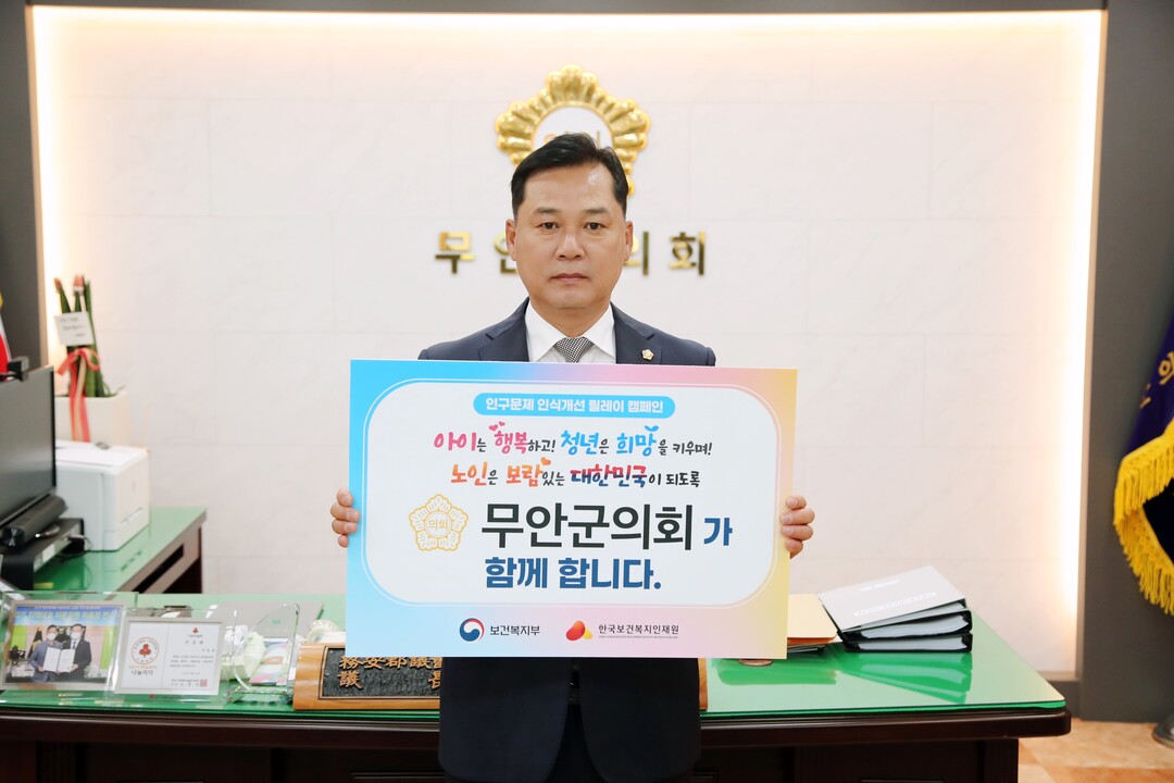 이호성 전남 무안군의회 의장이 2일 '인구문제 인식개선 릴레이 캠페인'에 참여하며 인구감소 문제 해결에 대한 의지를 나타냈다.