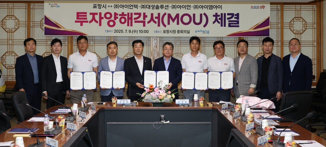 포항시에 따르면 이날 시와 MOU를 체결한 기업은 ㈜아이언텍, ㈜대성솔루션, ㈜아이언, ㈜아이엠아이 등으로, 행사에는 장상길 포항시 부시장을 비롯해 김일만 포항시의회 의장, 정해혁 한국산업단지공단 포항지사장, 김헌덕 포항소재산업진흥원장, 각 기업 대표 등이 참석했다.