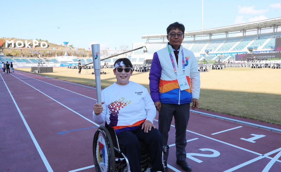 | ▲ 제43회 전국장애인체육대회 개막일인 3일 오후 목포종합경기장에서 개회식 성화봉송 리허설이 펼쳐지고 있다. [전남도 제공] |