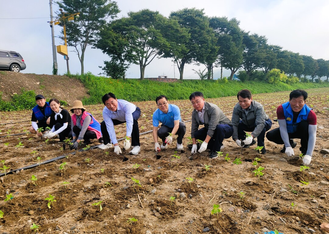 김 군수는 지난 19일 황룡강 일원에서 열린 해바라기 단지 조성 행사에 참석해 가을 꽃 모종을 직접 심으며 축제 성공을 위한 첫 출발을 알렸다.