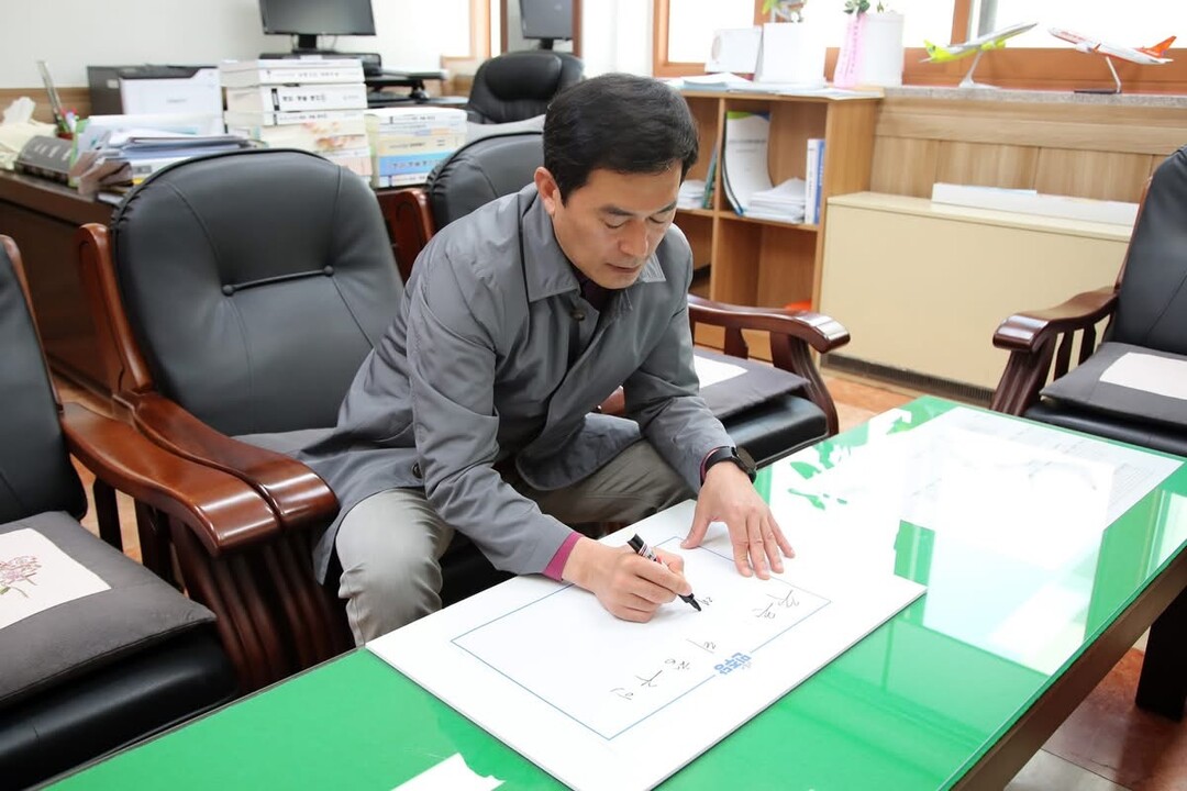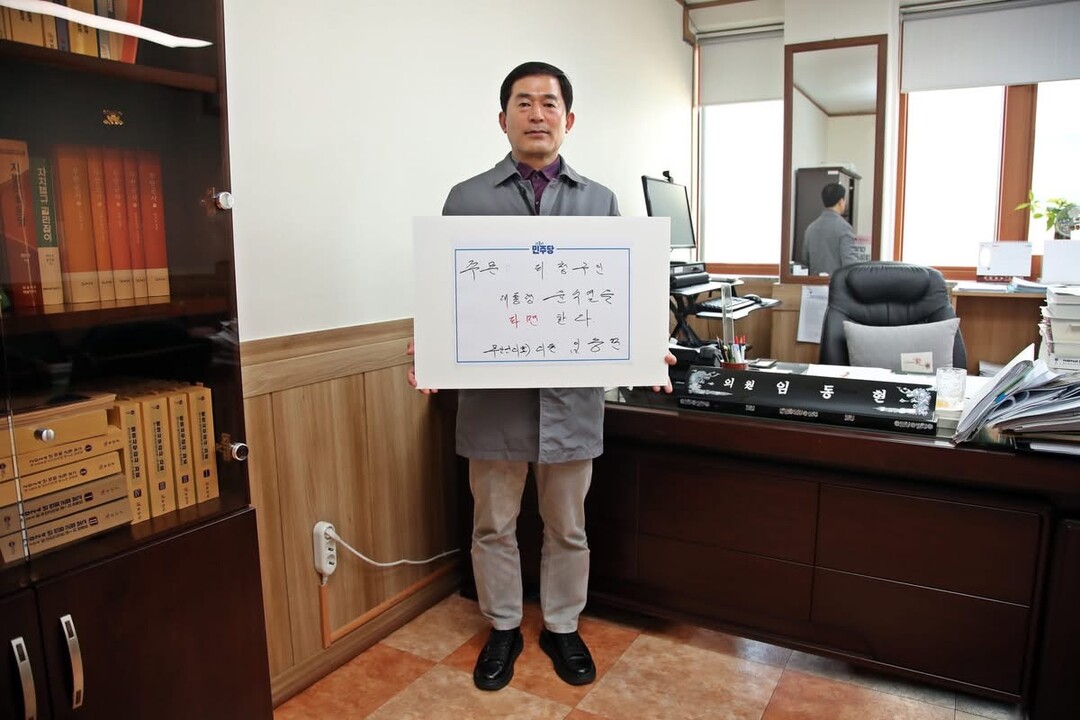| ▲ 임동현 무안군의회 의원이 2일 윤석열 파면을 촉구하는 손글씨 릴레이 캠페인에 참여하고 있다. [임동현 제공] |