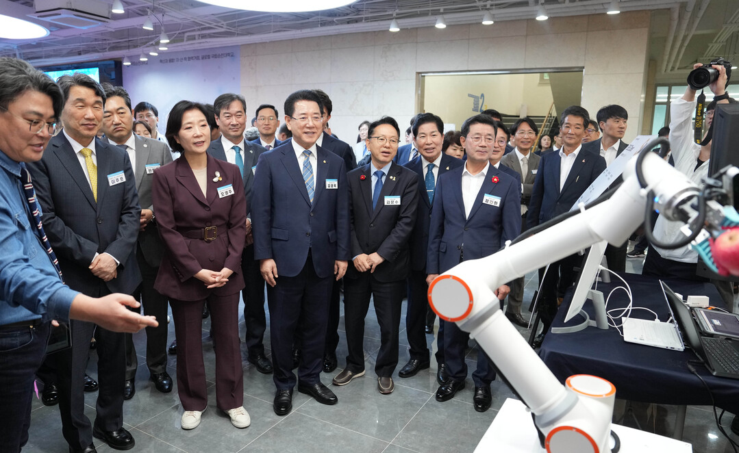 | ▲ '순천대 글로컬대학 강소지역기업 육성 비전 선포식'이 10일 순천대에서 열린 가운데 김영록 전라남도지사가 참석자들과 글로컬 특화분야 시연성과를 관람하고 있다. [전남도 제공] |