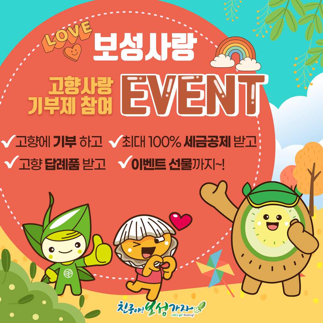 보성군은 이번 이벤트 기간인 다음달 1일부터 31일까지 10만 원 이상 기부하고 답례품을 주문한 기부자를 대상으로 추첨을 통해 홍보 물품을 증정한다.