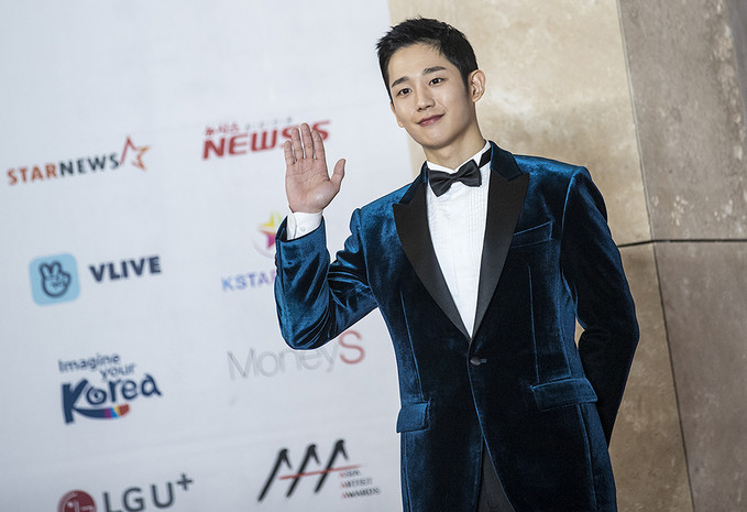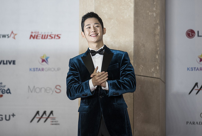 배우 정해인이 28일 오후 인천 중구 파라다이스시티 아트스페이스 플라자에서 열린 ‘2018 AAA(Asia Artist Award)’ 레드카펫 행사에서 포즈를 취하고 있다.