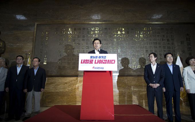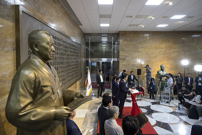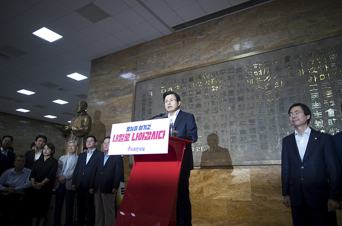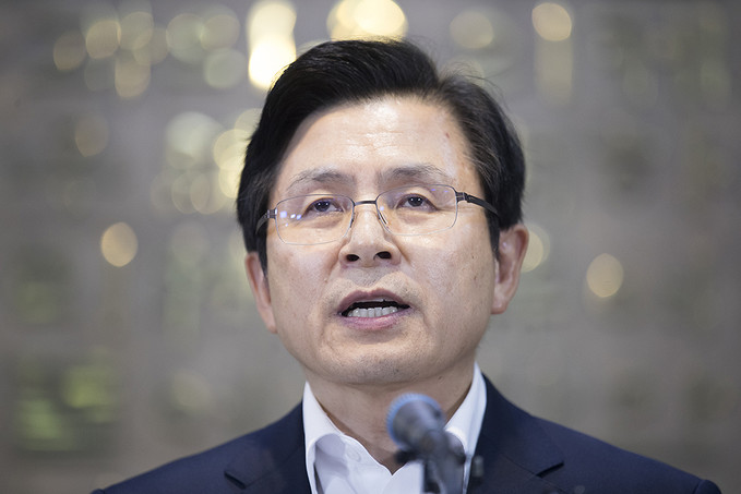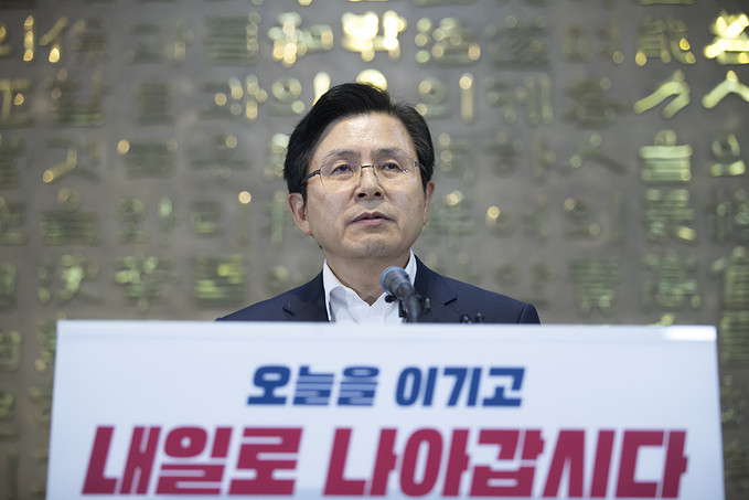 자유한국당 황교안 대표가 14일 오후 서울 영등포구 국회의사당 로텐더홀에서 대국민 담화문을 발표하기 위해 로텐데홀로 들어오고 있다.