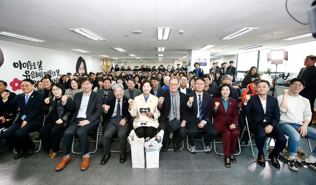 경기도교육감 선거에 나선 유은혜 예비후보가 지난 7일 수원 마라톤빌딩에 마련된 선거사무소에서 개소식을 성황리에 개최했다.