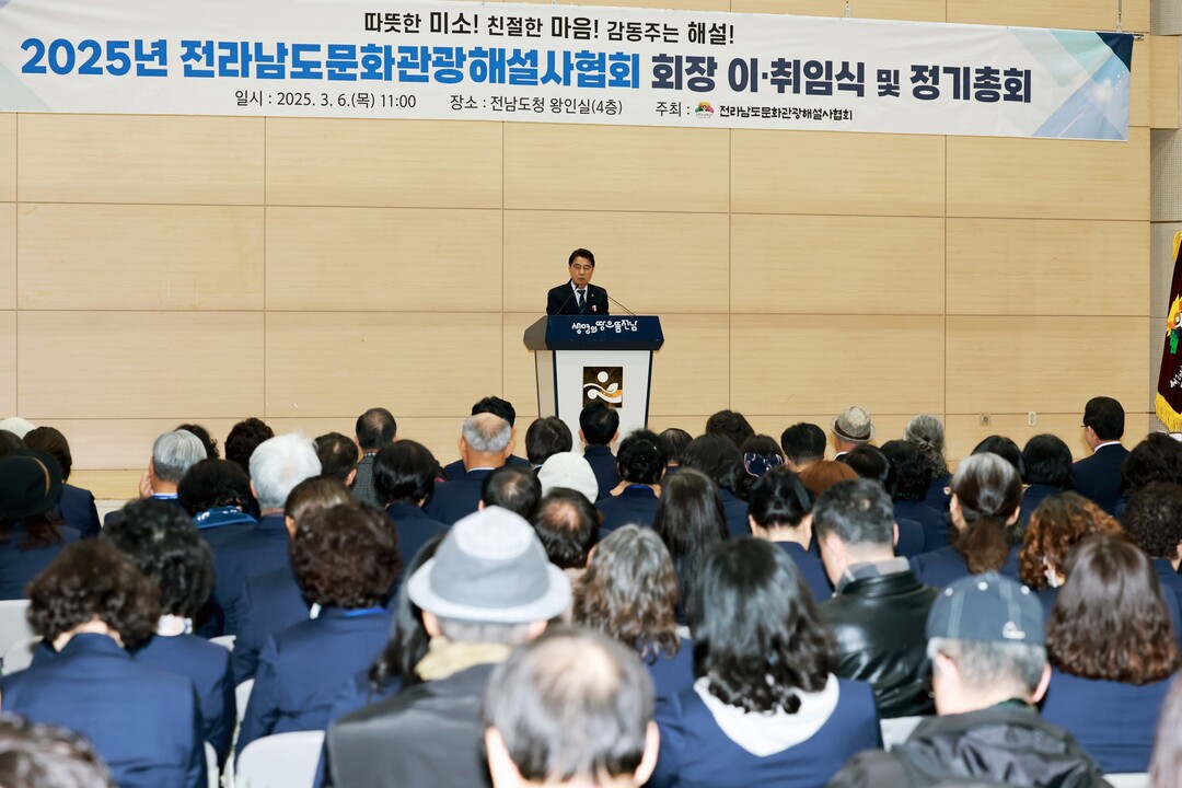 김태균 전라남도의회 의장이 6일 '전남문화관광해설사협회장 이‧취임식'에 참석해 "전남의 홍보대사로서 여러분의 역할이 무엇보다 중요하다"고 강조했다.